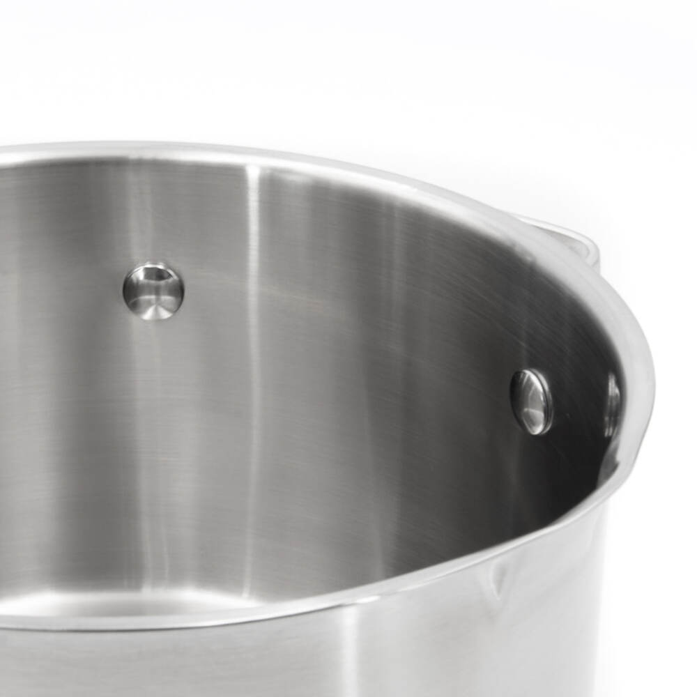 - Многослойное дно с инкапсулированным алюминием – запатентованное изобретение, благодаря которому удалось добиться идеального распределения тепла по всей поверхности без пригорания пищи во время приготовления.