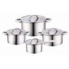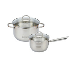 сами крышки изготовлены их жаропрочного стекла с обязательным отверстием под выпуск пара. Чуть меньший набор Леснер 55857 состоит из 4 предметов – двух кастрюль и двух же крышек: