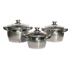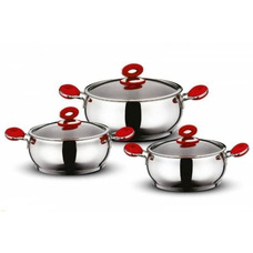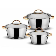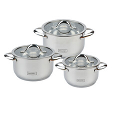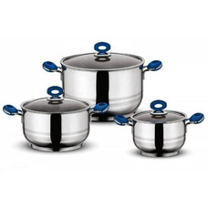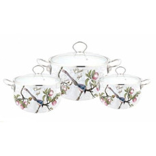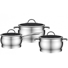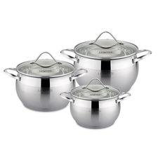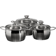 Для тех, кто формирует основу будущей кухонной утвари, не лишним будет обратиться к уже готовым наборам кастрюль в количестве от 4 до 10 предметов. Если у вас нет ни одной кастрюльки, присмотритесь к самым большим наборам на 10 единиц. Средним вариантом является набор Apple 6 предметов 55859 Лесснер, в который входит 3 кастрюли и 3 крышки к ним: