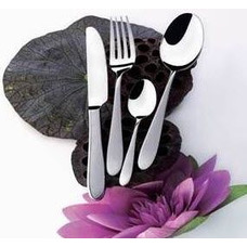 - Самые сдержанные по форме – классические Megane с чистым стальным блеском. Представлены столовые и чайные ложки, ножи и вилки в наборах по 2 шт.