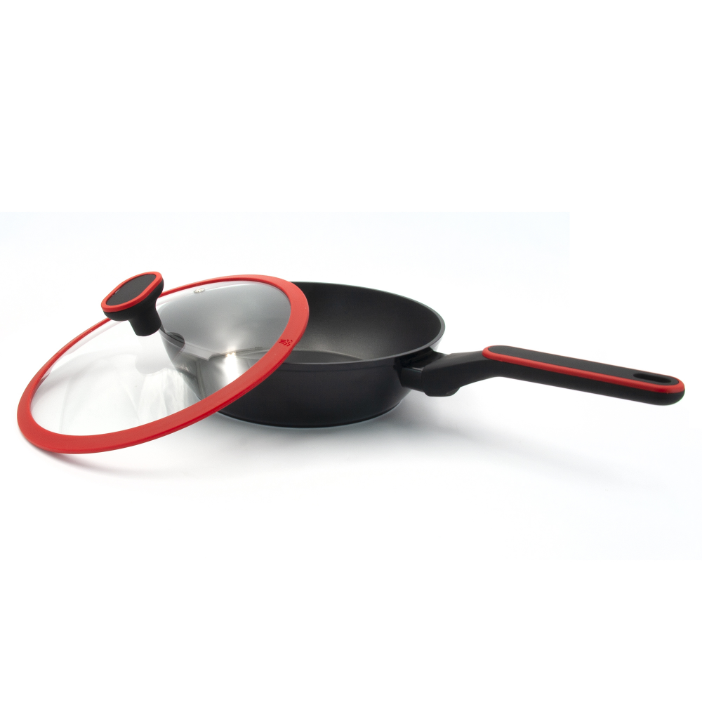 Идущая в комплекте крышка с прозрачным жаропрочным стеклом позволит следить за процессом приготовления, не давая температуре измениться за счет поднятия. Для отвода излишнего пара сделано небольшое отверстие.