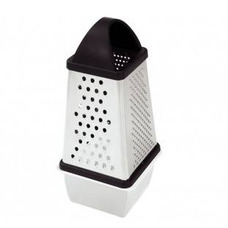 Форма терки напрямую влияет на ее рабочие свойства. Если вам необходимо лишь изредка натереть небольшое количество овощей, то хватит и плоской терки 10096 с двумя гранями. Чтобы все не разлеталось по сторонам и не приходилось искать дополнительную тару, берите терку с собственным контейнером 10062 или 11119. Удобно также тем, что можно поставить натертое в холодильник.